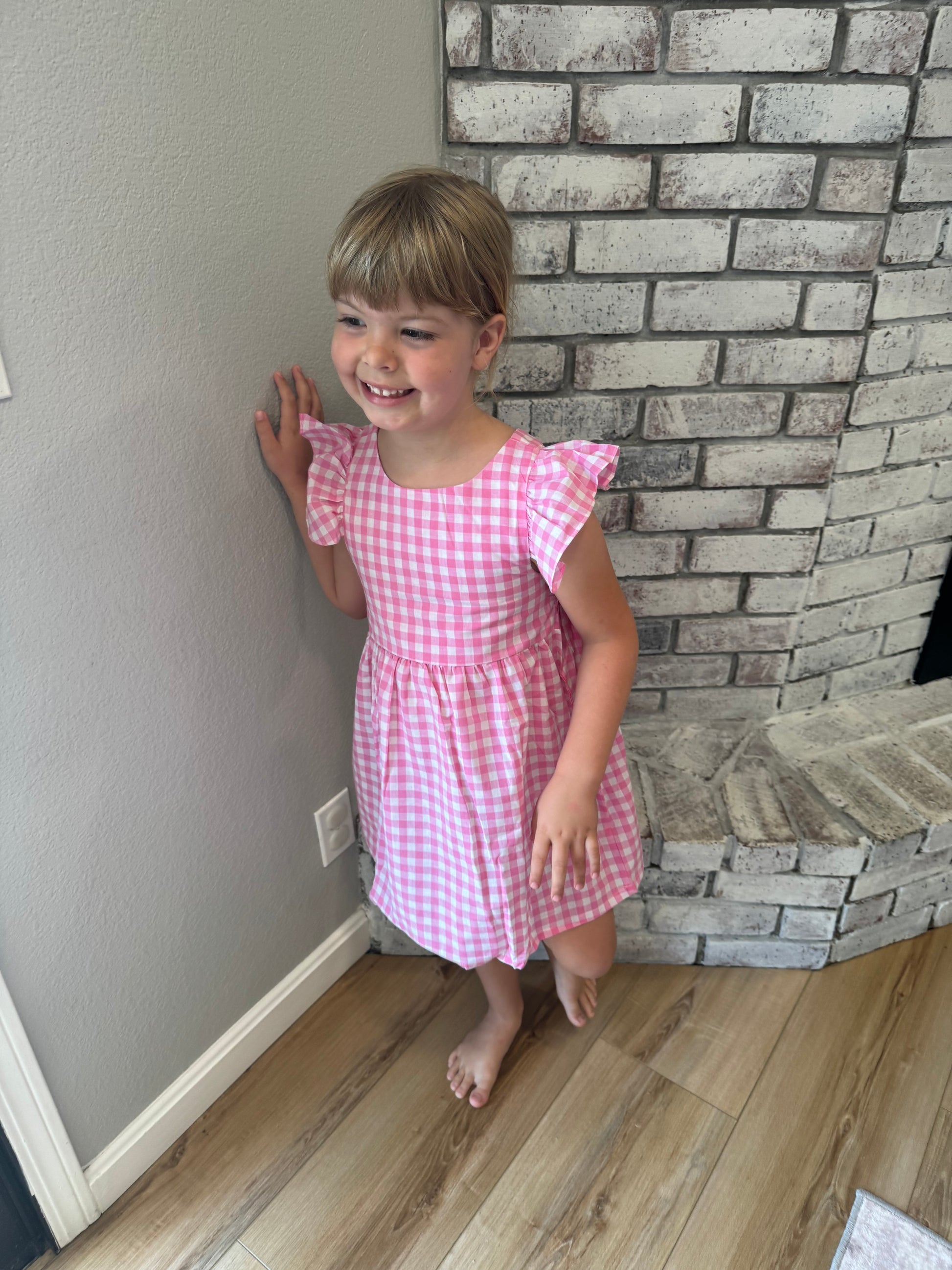L.W. Clothing Company Pink Gingham Ruffle Girls Dress Baby and Toddler Bowknot Casual Party Dress A-Line Sundress 100% Cotton Gingham Pattern Easy-to-Use Back Closure